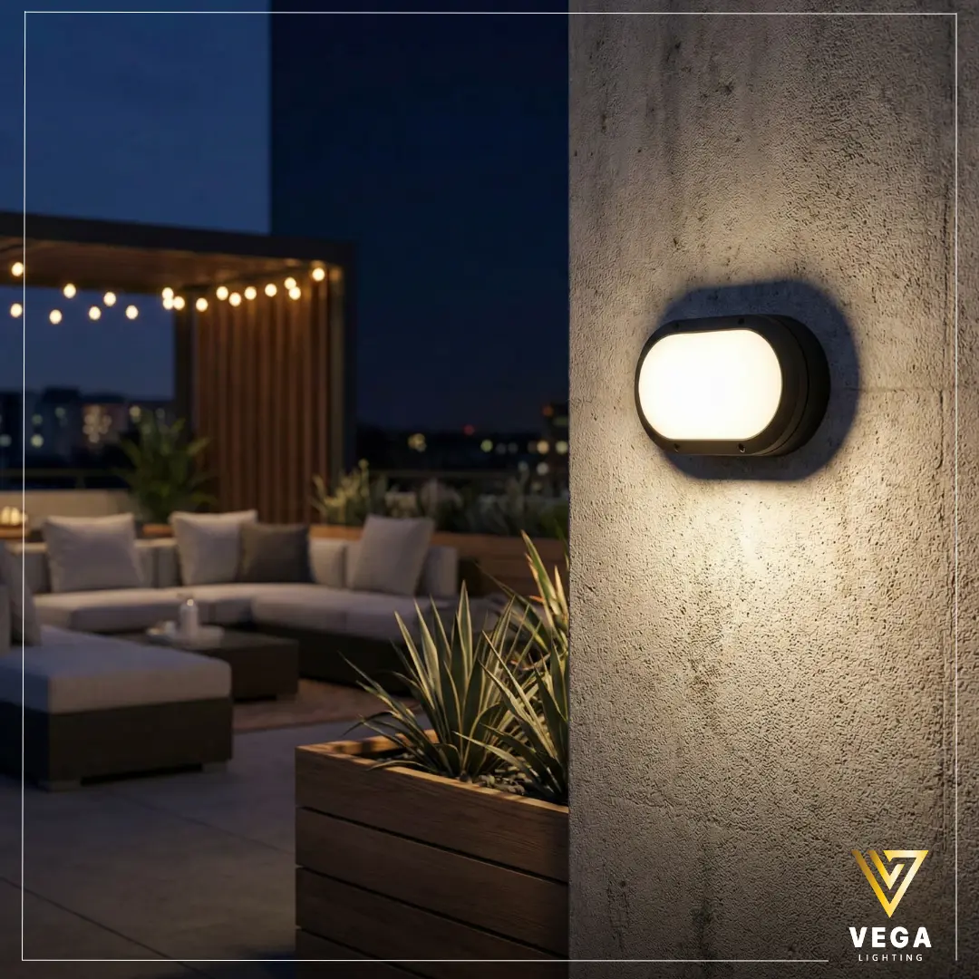 التصميم البيضاوي يمنح المنتج شكل مختلف عن الإضاءة التقليدية، ويجعله مناسب للواجهات الحديثة سواء كانت خرسانة أو حجر أو دهان. كما أن الشكل الهادئ يجعل الأبليك الخارجي مناسب للديكور بدون زحمة بصرية، ويمكن تركيبه كقطعة واحدة أو ضمن توزيع متناسق.