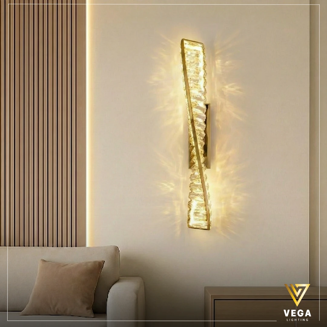 أبليك GLINT جلينت هو اختيار مثالي لكل من يبحث عن قطعة إضاءة تجمع بين الفخامة العصرية والتصميم العملي. يتميز الأبليك بتكوين طولي أنيق بطول 60 سم مع كريستال فاخر يعكس الضوء بشكل جذاب، مما يمنح الجدار حضورًا بصريًا راقيًا دون مبالغة.